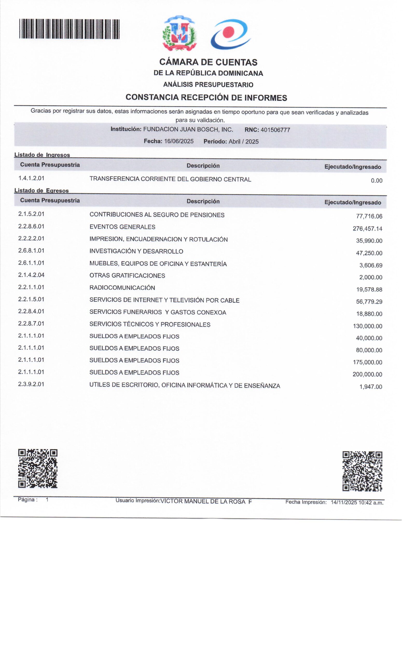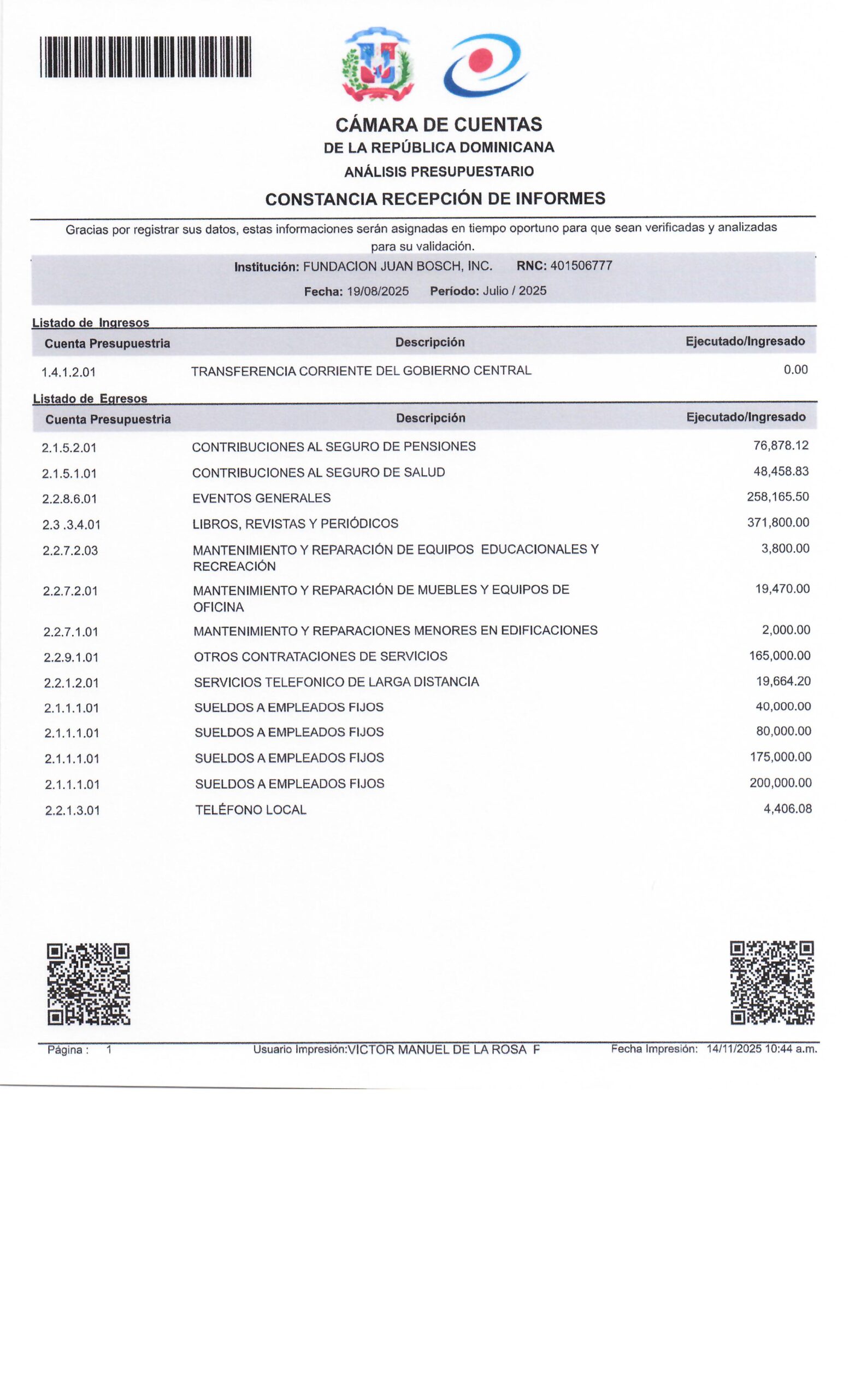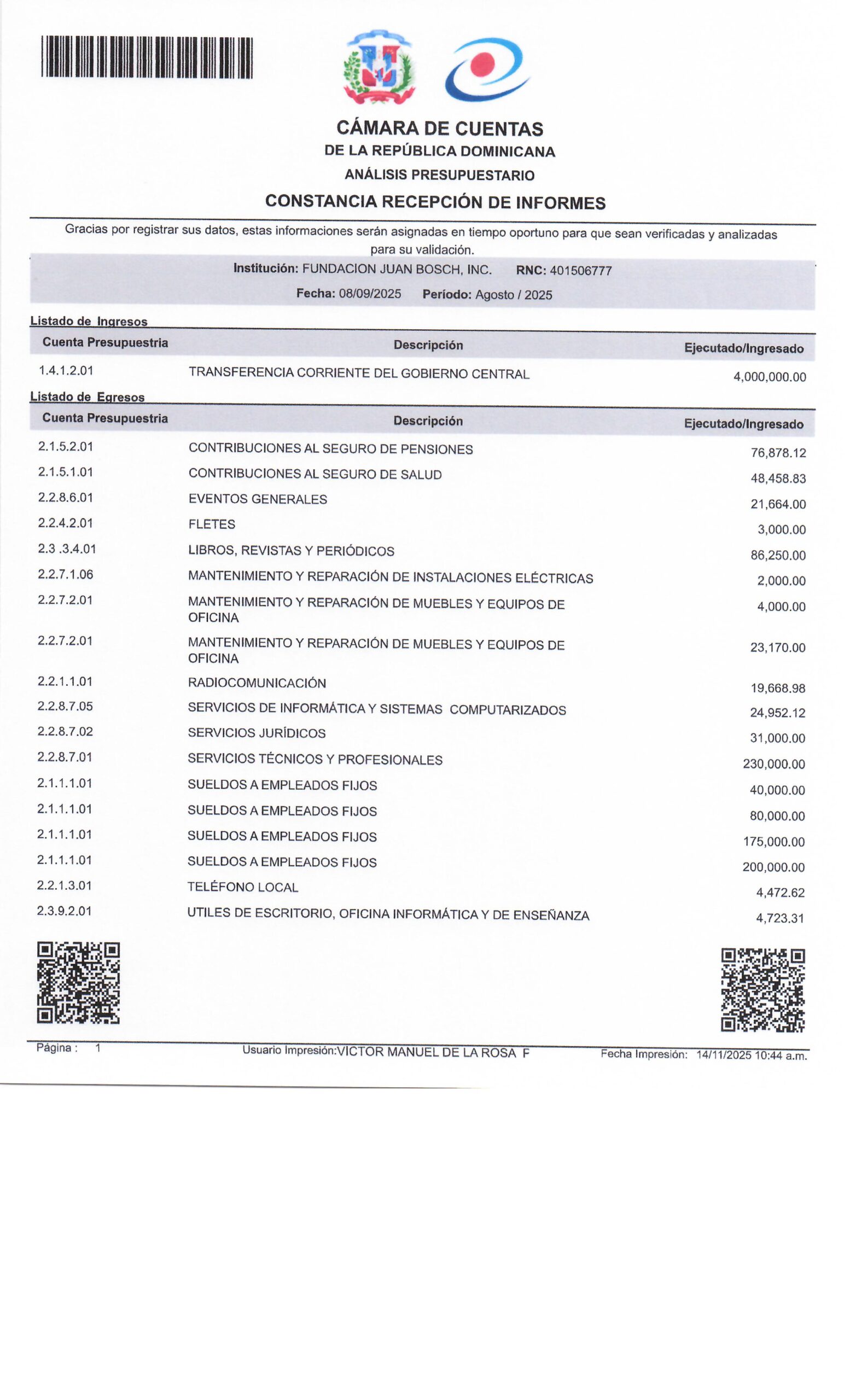 FINANZAS 2021 2022 2023 2024 Reporte de ejecuciones presupuestarias 2022 2023 2024 Enero 2025 Febrero 2025 Marzo 2025 Abril 2025 Mayo 2025 Junio 2025 Julio 2025 AGOSTO 2025 SEPTIEMBRE 2025 OCTUBRE 2025 NOVIEMBRE 2025 Diciembre 2025 Declaración jurada de Impuestos Internos (DGII) 2023 2024 2025